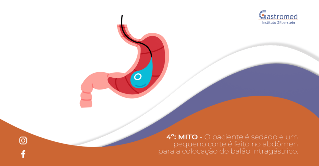 4º: MITO – O paciente é sedado e um pequeno corte é feito no abdômen para a colocação do balão intragástrico.